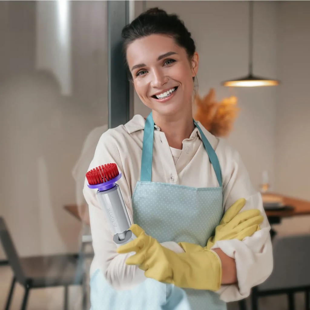 The secret lies in its interchangeable brush heads, designed for different cleaning needs. The tougher brushes tackle grease and stubborn grime, while the softer ones are perfect for delicate surfaces like glass and stainless steel. This versatility makes it suitable for virtually any area in your home — from bathroom tiles to kitchen counters.